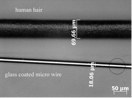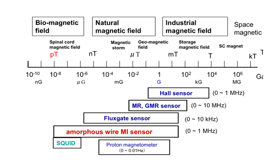 GMI传感器是一种响应极快磁异常(MAD)检测传感器。适用高速微磁检测 。应用于国防、海洋监测、地磁监测、医疗、智能电网、智能交通(ETC 和车辆流量检测 、红绿灯智能交通路口的车辆检测、泊位停车)等等。 新型磁性合金材料,优选组份及非晶制备工艺,研发的磁传感器,采独特热处理工艺。突破探头焊接难题。使其达到了极好温度稳定性、超灵敏度、高速响应、大量程的磁敏探头。 优化的信号处理电路达到微型化、芯片化、消耗功率小、成本低。无须制冷的超灵敏度 1PT传感器。响应速度(1nS)1GHZ。 “ 从图表可看几类磁传感器性能比对,MI sensor优于其它磁传感器 我国微弱磁信号检测水平已达到1PT(10-12)。磁通门传感器0.1nT分辨力,以铯光泵磁传感器0.03nT,GMI磁异常传感器可达到0.001nT(1 PT)。及该材料具有传统电子信息材料无可比拟的优越性,给许多领域带来革命性的技术进步。该材料能够提升国家核心竞争力的战略性新型材料。 非晶丝如图 探头 传感器技术指标: 输出是磁场H变化的电压值nT/µV 磁场最高测量60-70高斯 磁场一般测量:在2G(高斯)=20万纳特 响应速度: 最快达到1nS (1GHZ) 一般相应速度:0-100nS(0-10MHz) 灵敏度:0.01nt /6µV; (5V或±2.5V) ±500nT。 灵敏度:0.1nT/10µV (10V或 ±5V) 量程在±100000nT 矫顽力:Hc 10A/M